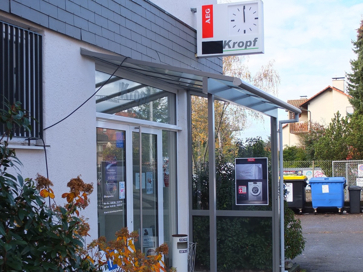 Der Erfolg ermutigt Wolfgang Kropf zwei Jahre später zu einem großen Schritt: In der Kandernstraße 37/1 in Steinen präsentiert Elektrotechnik Kropf auf großzügiger Verkäufsfläche Waschmaschinen, Trockner, Gefrierschränke, Staubsauger, Rasierer und Fernsehgeräte. Dieses Angebot finden Sie auch an unserem jetzigen Standort in der Lörracher Straße 9 wo wir Ihnen in den „eigenen vier Wänden" gerne mit Rat und Tat zur Seite stehen.